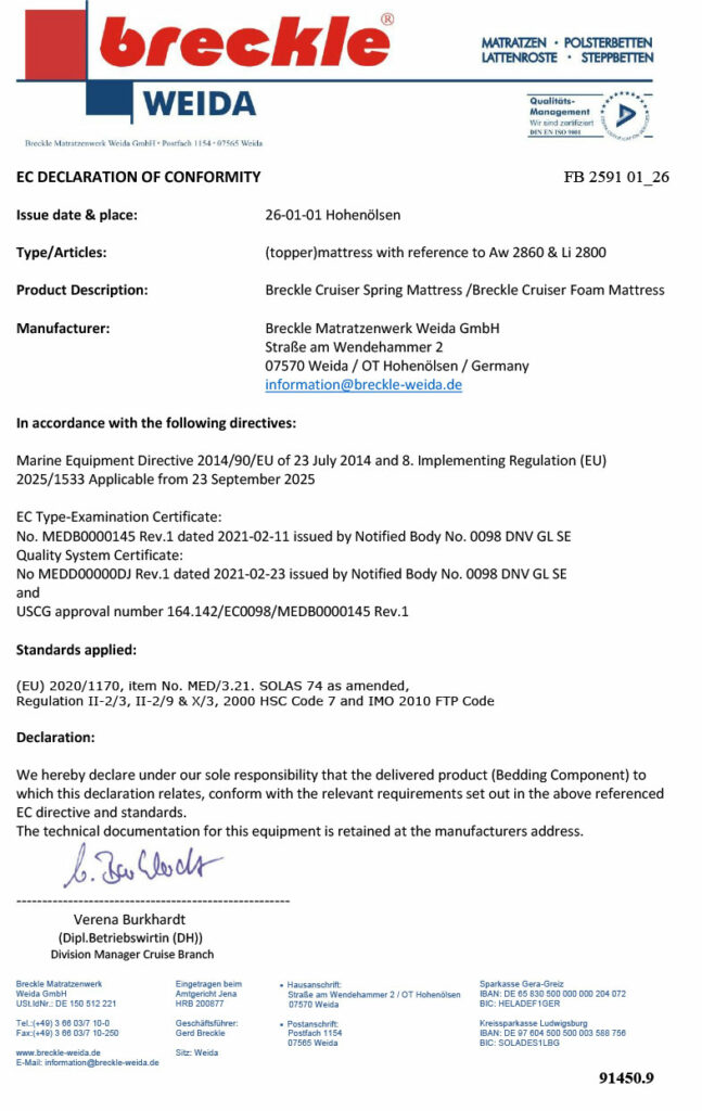 Breckle Cruise - Schiffsmatratzen